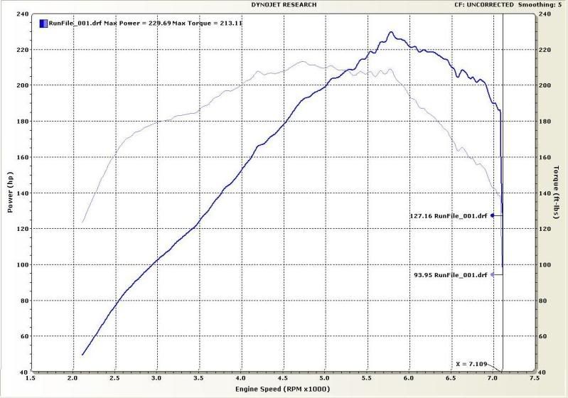 Unless it has cams and rocker arm stoppers I dont mess with Rev limit and unless they have springs i dont raise it above 7500 Your prob talkin about Kosta...cause thats the only SR car i ever had on the dyno that had an issue. Halfway through the 4th run of tuning it started to knock, its unfortunate but sometimes thats what happens with a used motor and you dont know the history. I felt bad checked it out for him (for free) and also charged him half the amount he owed for tuning. as well as answered a ton of questions for him every time he called while he was trying to fix it. anyway, here is the actual dyno plot from one of his runs....notice the revlimit ![]() sorry for jacking your thread, but if need any help we can certainly help you, we do not offer chip burning but we are an Authorized Power FC tuner.