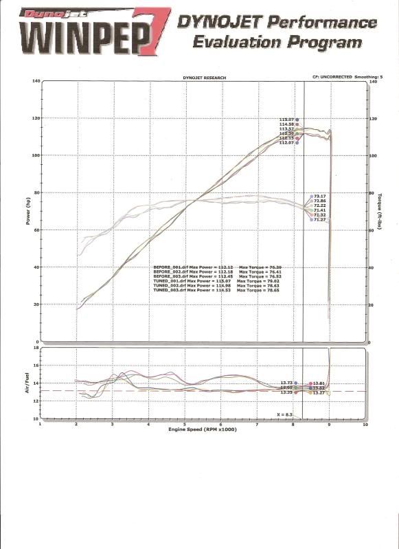 ![]() Lil small to see but its 115hp/79tq both are 3 up from before tune. The biggest difference is how smooth the bike is. Now to go to Atco tomorrow.