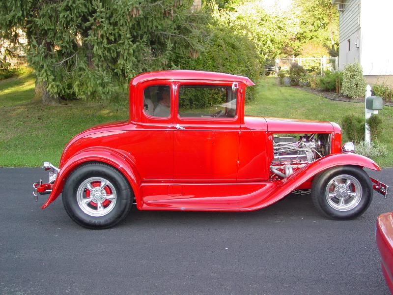 garage, painted and chromed up ready to go also, marc, my dad's street rod is a 1930 Ford Model A EDIT for a repost of this pic, but here it is for noobs (and marc apparently)