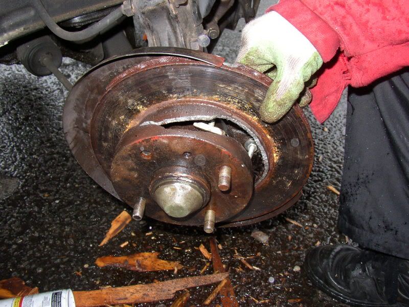When me and my bro were driving down to drift camp the brake started to stick on 195 so we turned around and found out the caliper was ****ed and the rotor was warped. The rotor would not come off, we hit it with a 2 lbs hammer, sledge hammer, and bent a c-clamp. The rotor cracked when he hit it with the sledge hammer after about 2 hours so we got out a grinder and forced that bitch off. Today we found out we messed up the rack or bent the tie rod, woo whoo